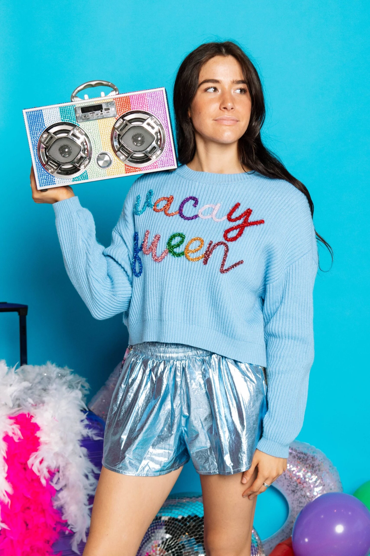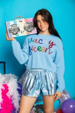 - “Vacation Queen” in glitter script