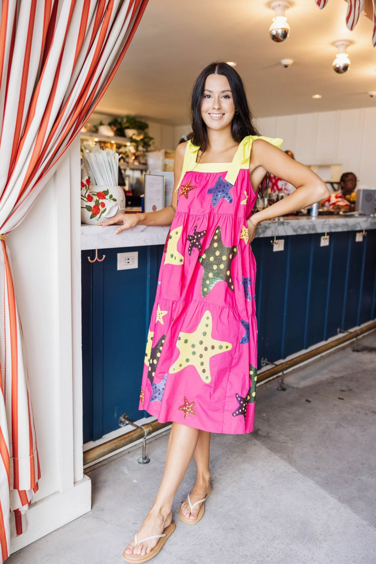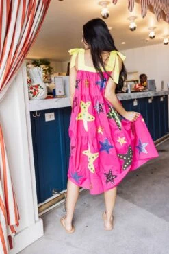 Pink & Yellow Tie Starfish Maxi Dress