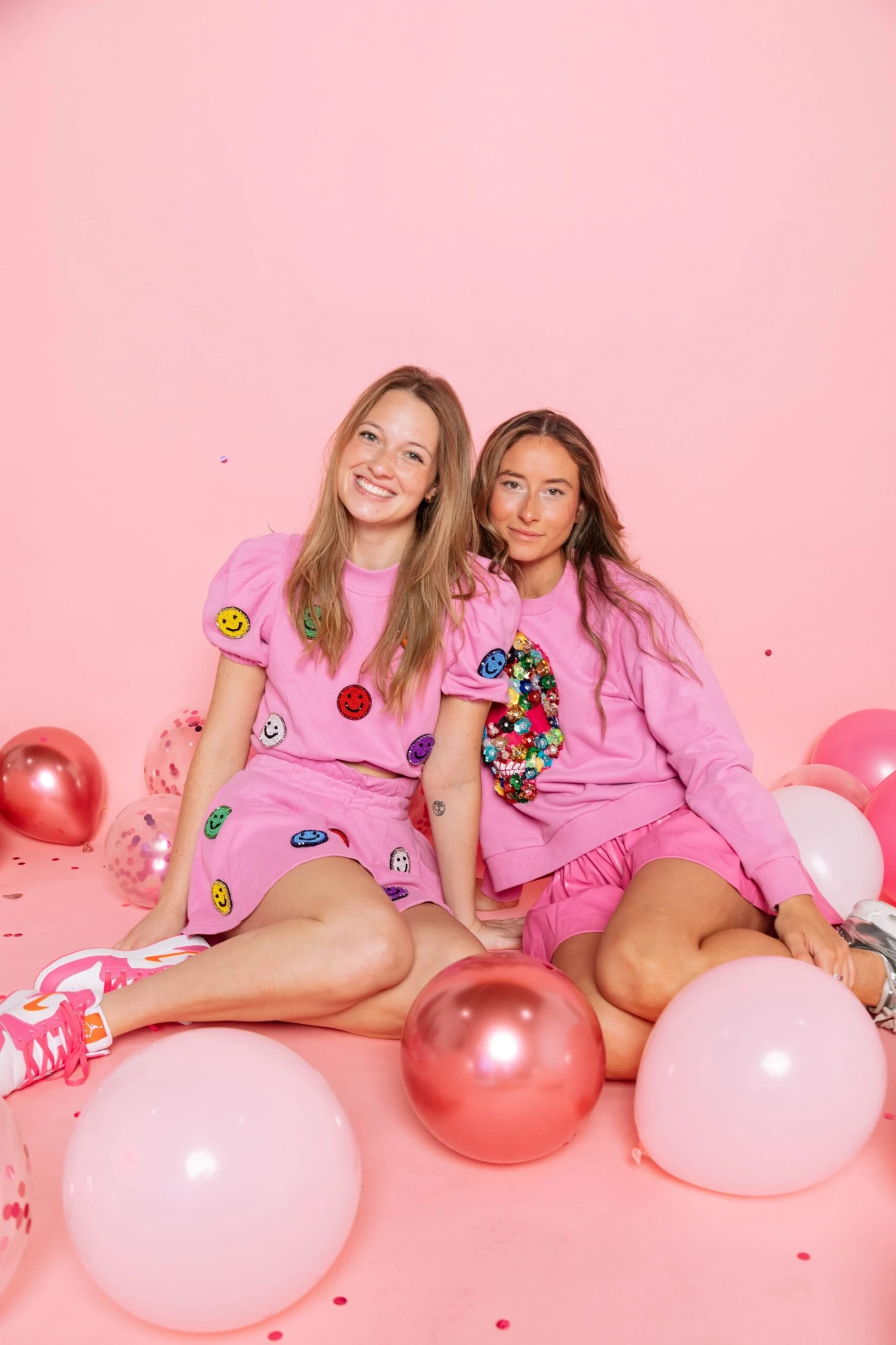 Queen Of Sparkles 3D Pink Smiley Poof Top