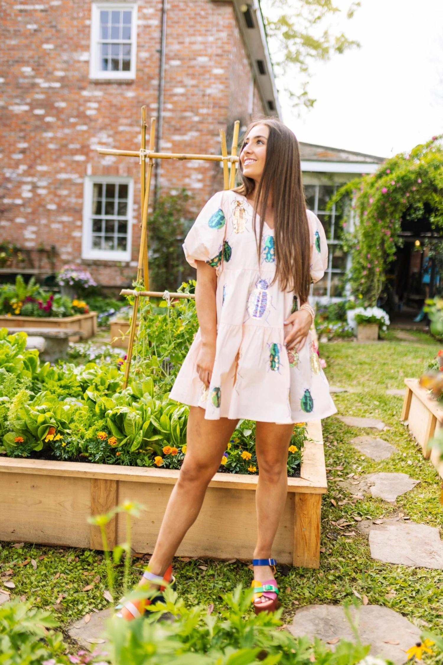 Queen Of Sparkles Beige Beetle Dress
