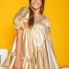 Queen Of Sparkles Beige & Gold Rhinestone Dress