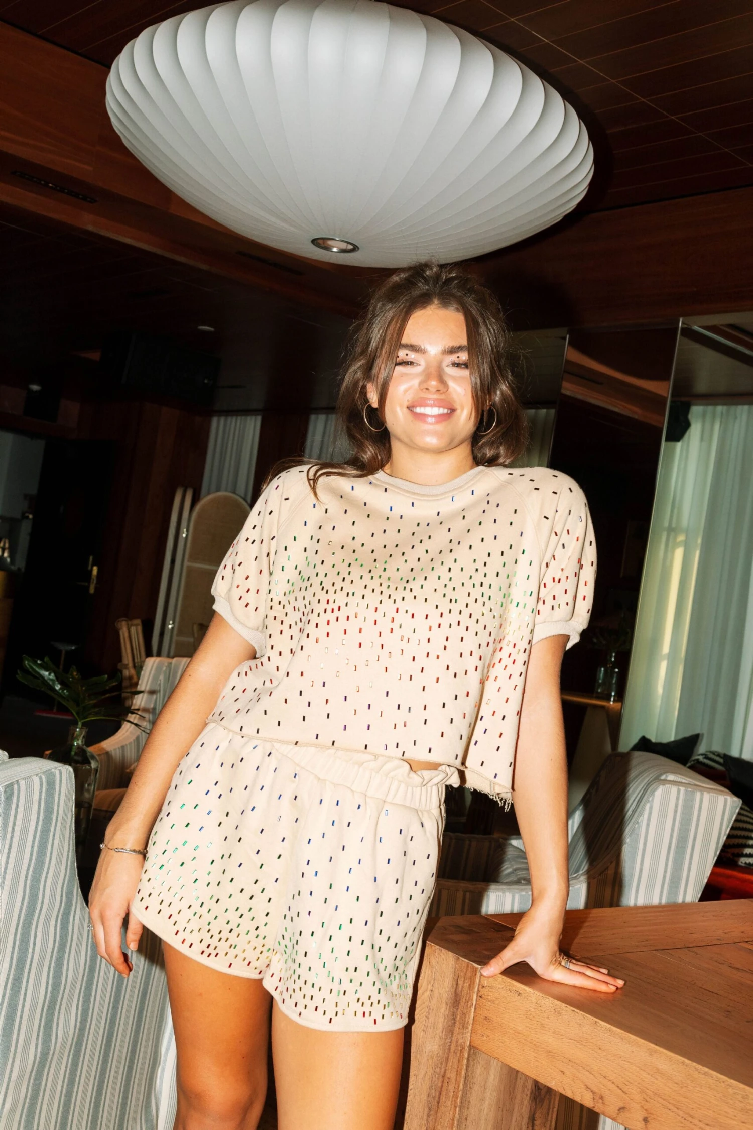 Queen Of Sparkles Beige Rainbow Rectangle Rhinestone Short