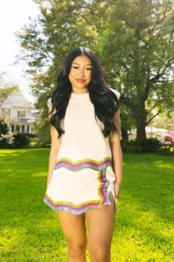 Queen Of Sparkles Beige Rainbow Wavy Skort