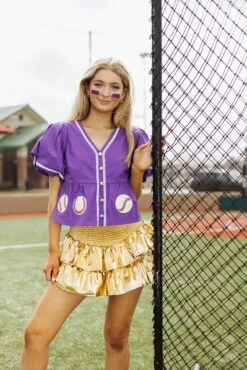 Queen Of Sparkles Black Cotton Rhinestone Bubble Top