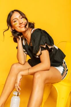 Be the first to review “Queen Of Sparkles Black & Gold QOS Jersey Peplum Top” Cancel reply
