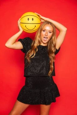Queen Of Sparkles Black Rhinestone Poof Sleeve Top