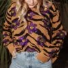 Queen Of Sparkles Black Sequin Stripe Feather Sweater