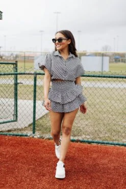 Queen Of Sparkles Black & White Checkered Bubble Top