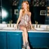 Queen Of Sparkles Camel Gold Wavy Flutter Top