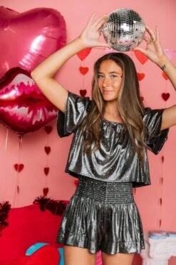 Queen Of Sparkles Charcoal Glitter Hearts Short