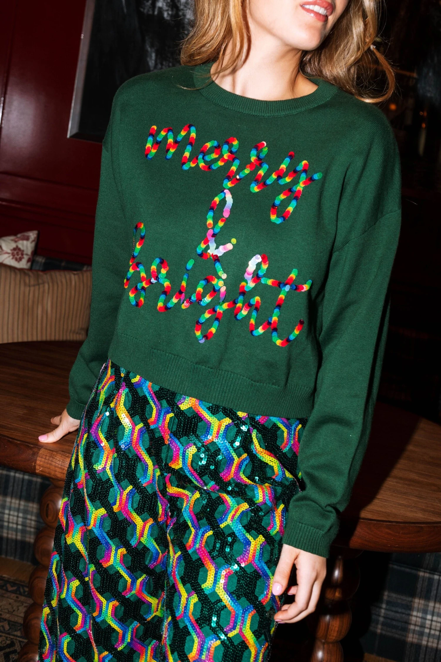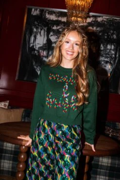 Queen Of Sparkles Green & Rainbow Merry And Bright Sweater