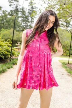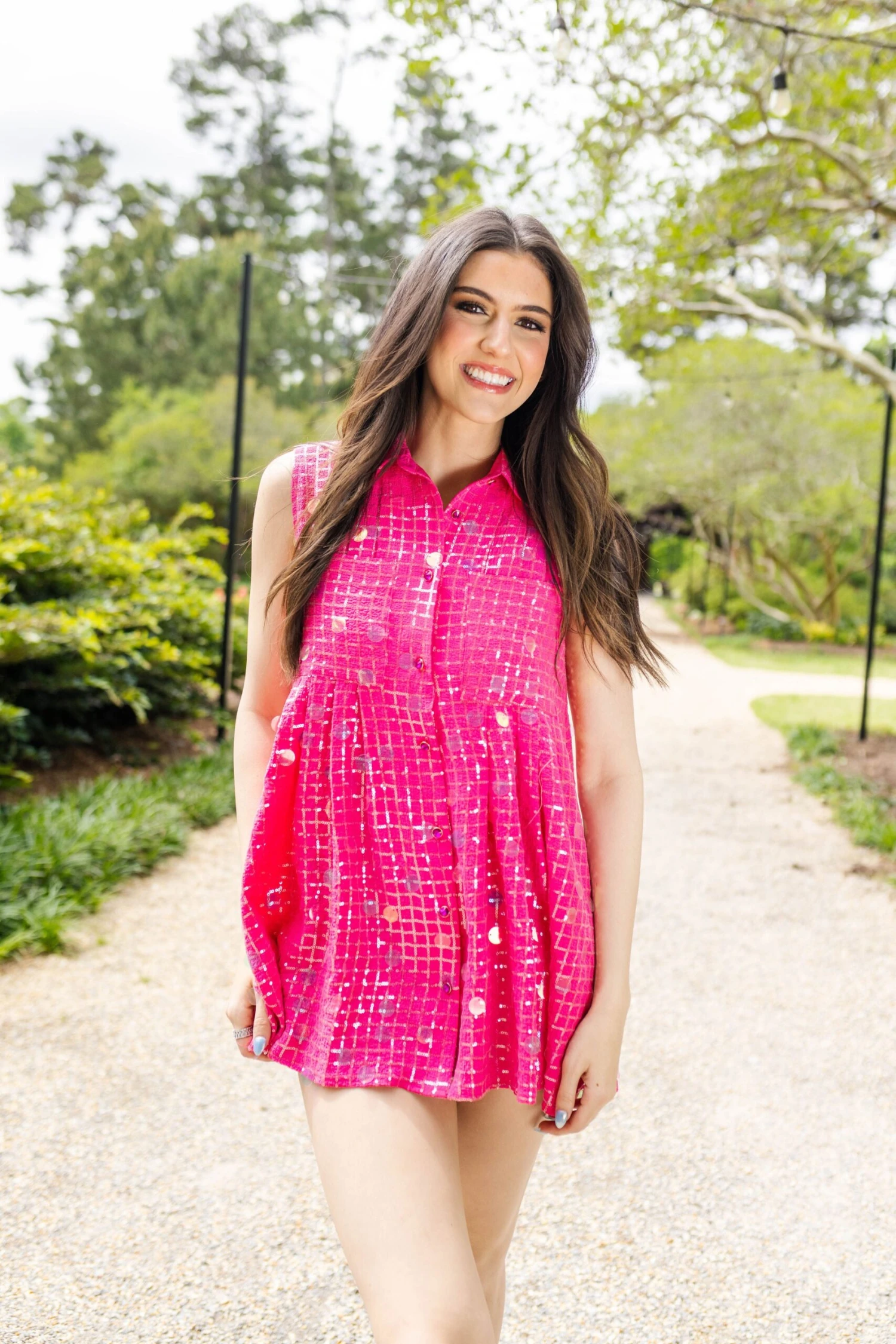 Queen Of Sparkles Hot Pink Checker Pailette Collar Dress