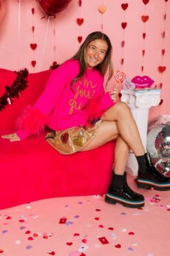 Queen Of Sparkles Hot Pink I’m Your Queen Feather Sweater