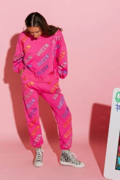 This Queen Sweatshirt is oversized and adorned with an eye-catching “QUEEN” design all over. Coordinate this sweatshirt with the matching joggers for a complete look!