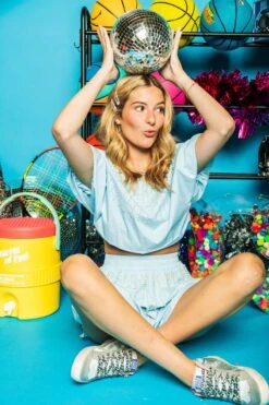Queen Of Sparkles Light Blue Cotton Bubble Top With White Pearl Burst