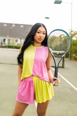 Queen Of Sparkles Lime/Bubblegum Active Rhinestone Short