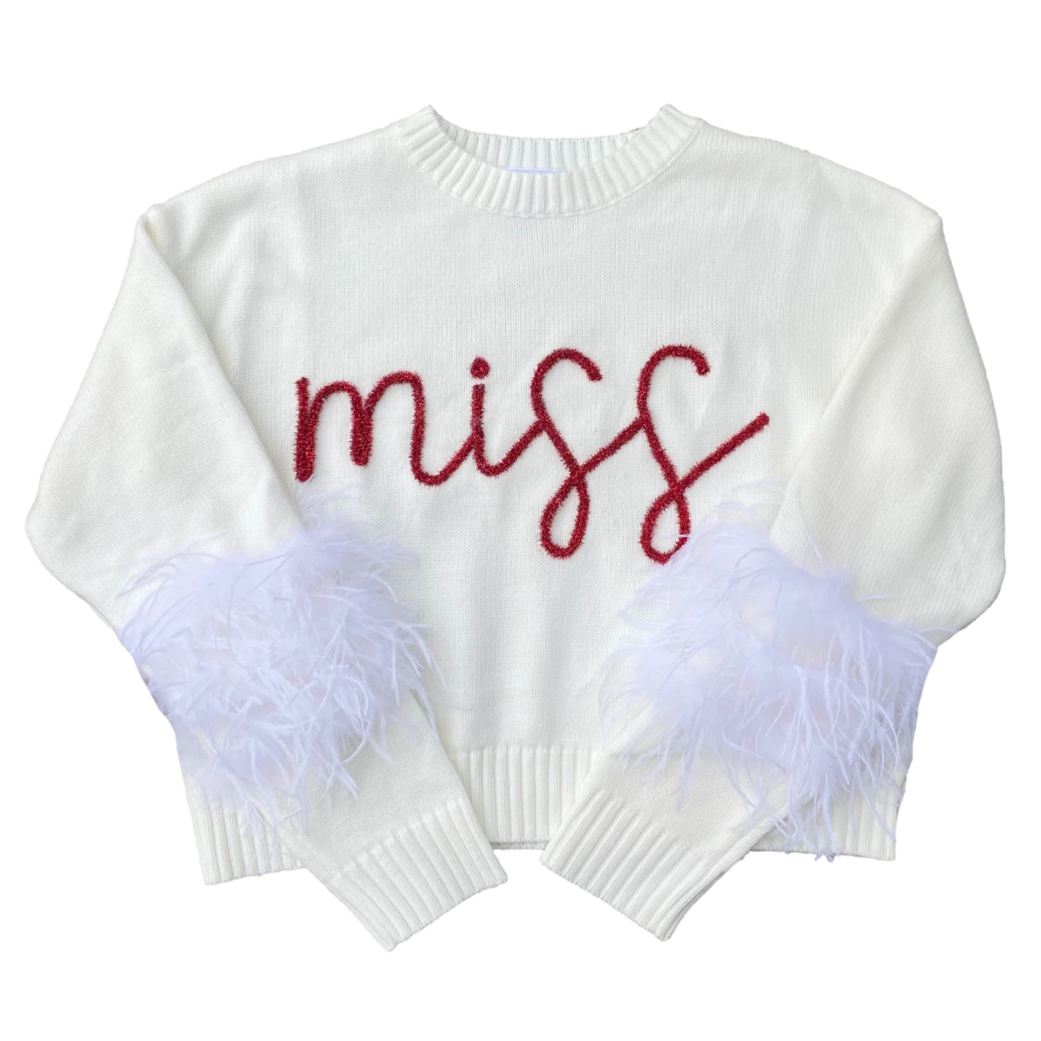 Queen Of Sparkles “Miss” Feather Sleeve Sweater