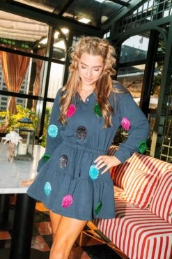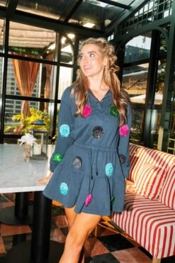 Queen Of Sparkles Navy Bead Fringe Circle Dress