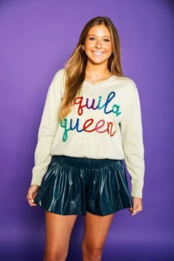 Queen Of Sparkles Navy Leather Swing Shorts