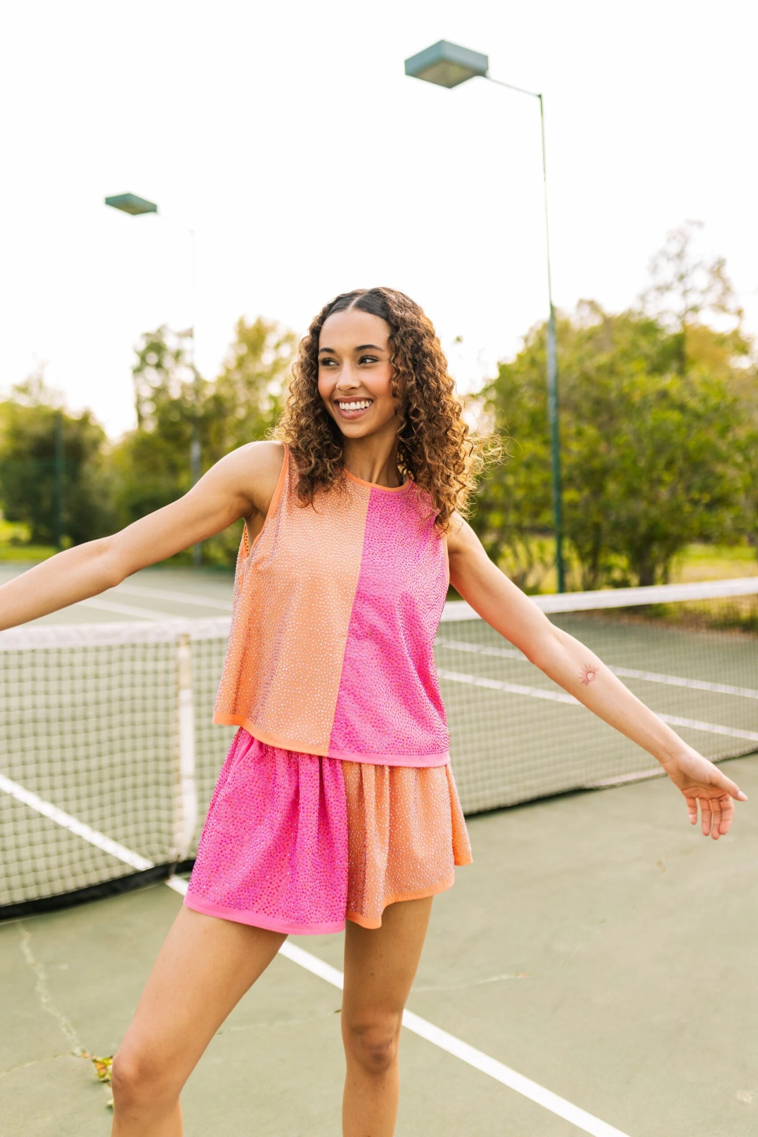 Queen Of Sparkles Pale Orange & Coral Active Rhinestone Tank