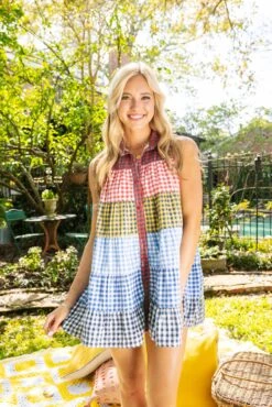Queen Of Sparkles Plaid Sleeveless Sequin Tier Dress