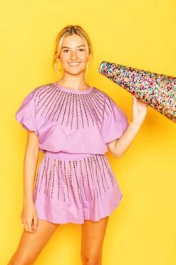 Queen Of Sparkles Purple Cotton Bubble Top With Gold Burst