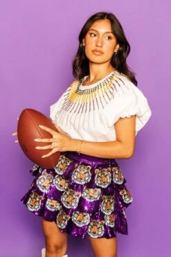 Queen Of Sparkles Purple Tiered Sequin Skirt With Tigers