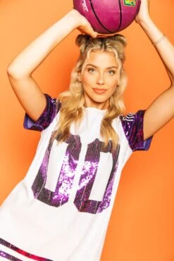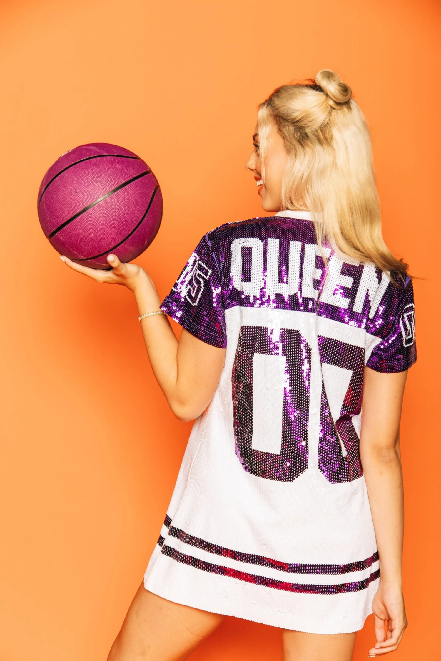 Queen Of Sparkles Purple & White Full Sequin Jersey Dress