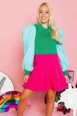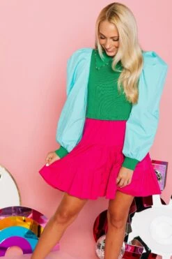 Queen Of Sparkles Rainbow Colorblock Collar Poof Sleeve Dress