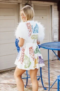 Queen Of Sparkles Rainbow Tigers Feather Sleeve Dress