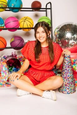 Queen Of Sparkles Red Cotton Bubble Top With Silver Burst