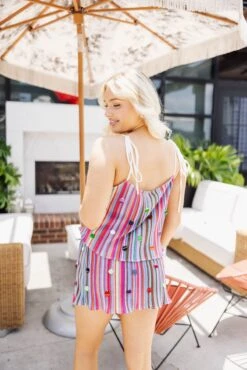 Queen Of Sparkles Red Paillette Stripe Tie Top