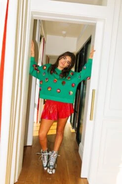 Queen Of Sparkles Red Ribbed Metallic Swing Short
