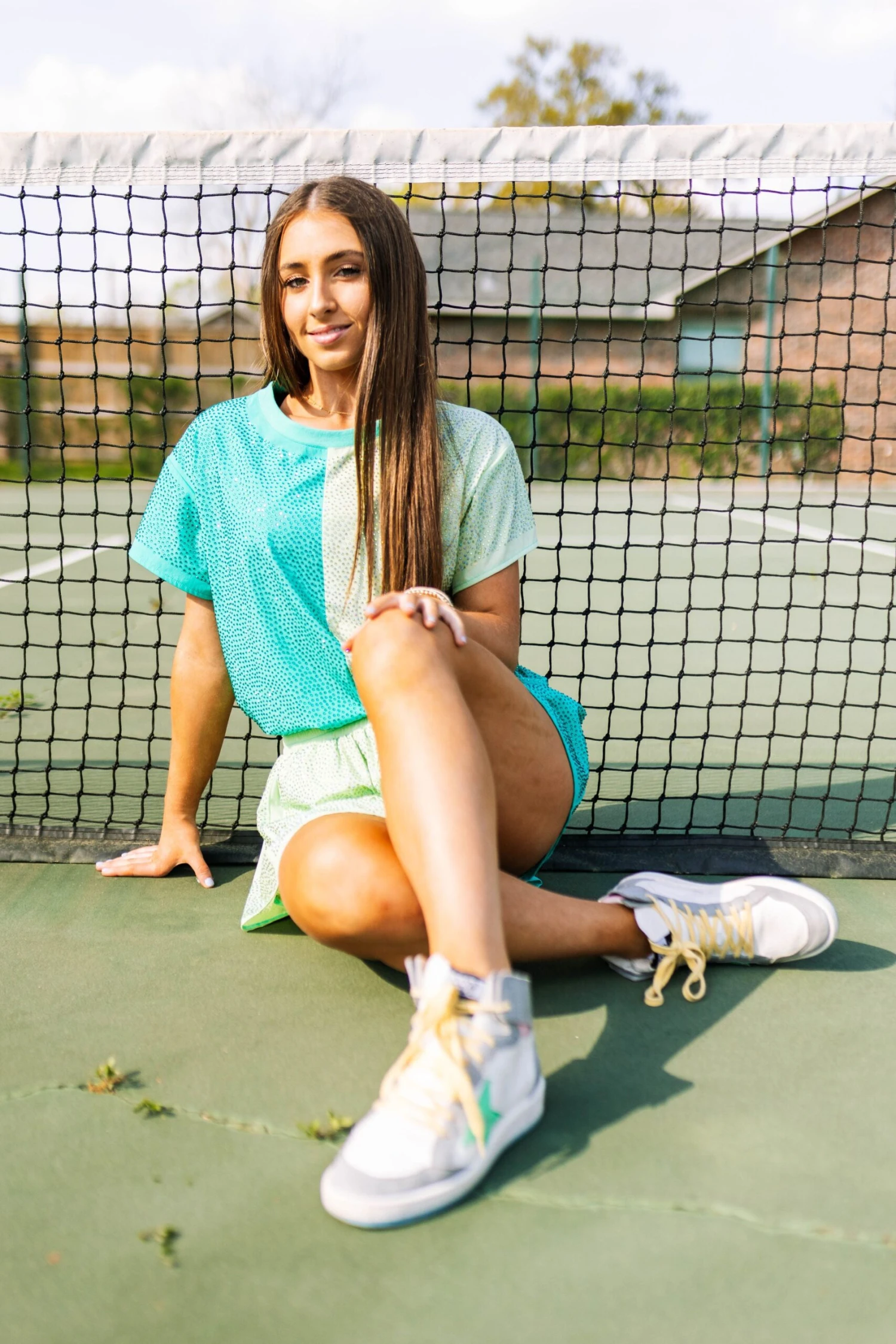 Queen Of Sparkles Teal & Pale Green Active Rhinestone Short