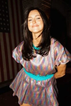 Queen Of Sparkles Teal Rainbow Sequin Bubble Top