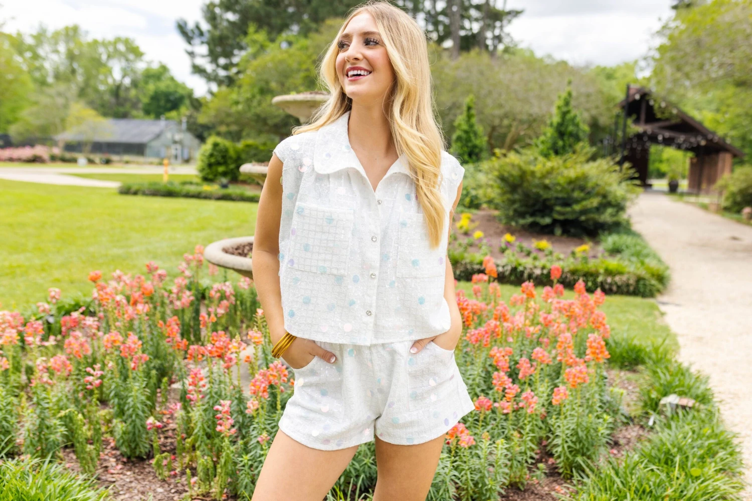 Be the first to review “Queen Of Sparkles White Checker Paillette Collar Top” Cancel reply