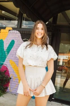 Queen Of Sparkles White Cotton Rhinestone Swing Short