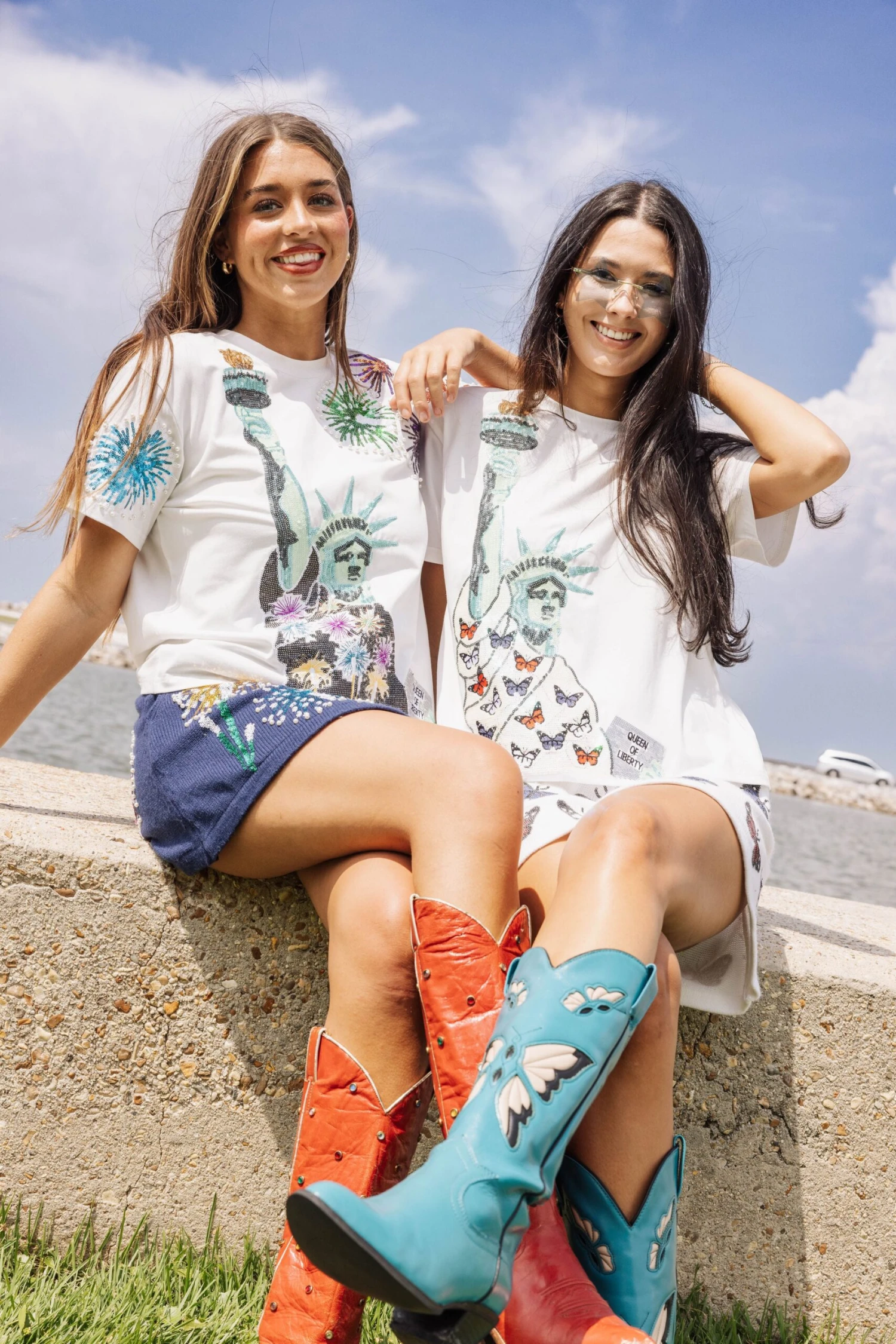 Queen Of Sparkles White Firework Lady Liberty Tee