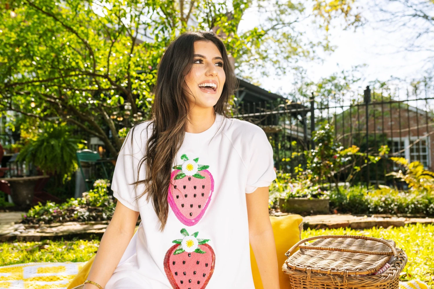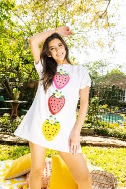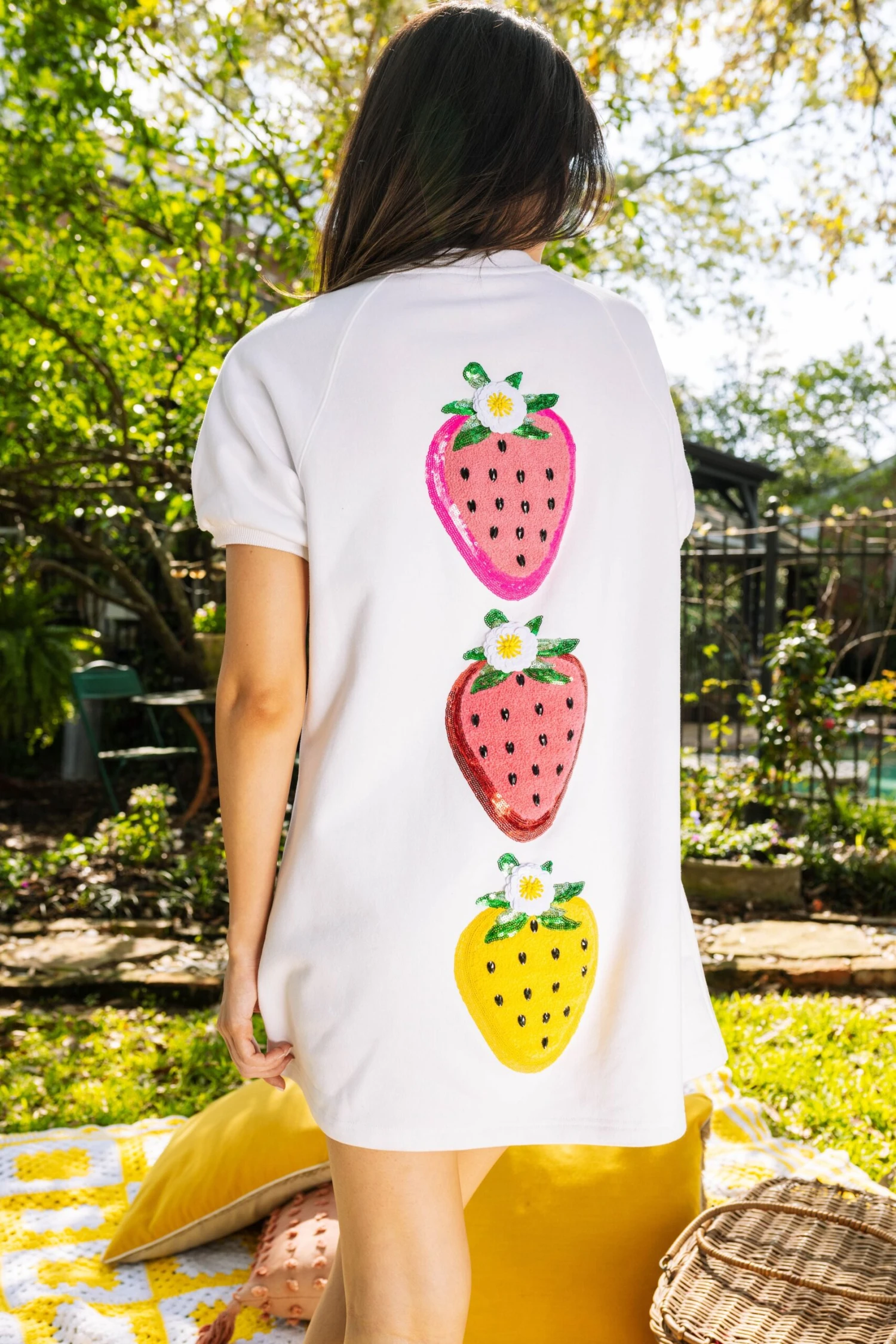 Queen Of Sparkles White Fuzzy Strawberry Dress