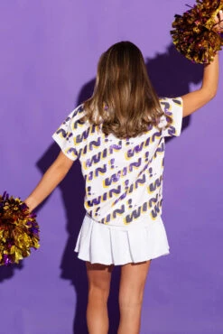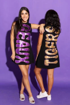 Queen Of Sparkles White Iridescent ‘Geaux Tigers’ Tank Dress