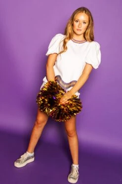 Queen Of Sparkles White, Purple/Gold Wavy Short