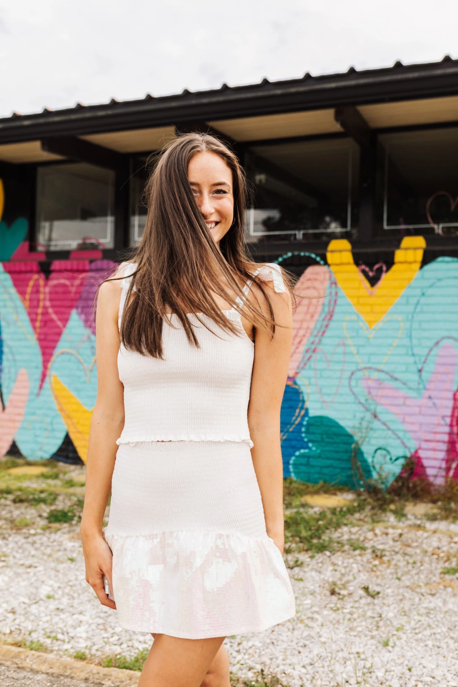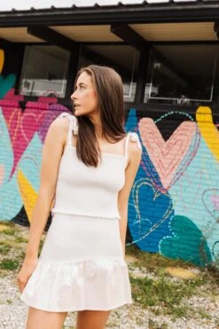 Queen Of Sparkles White Smocked Sequin Tie Tank