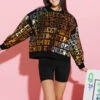 This Queen lounge set Sweatshirt features an oversized sequin “QUEEN” design all over. Complete the look with the matching shorts!